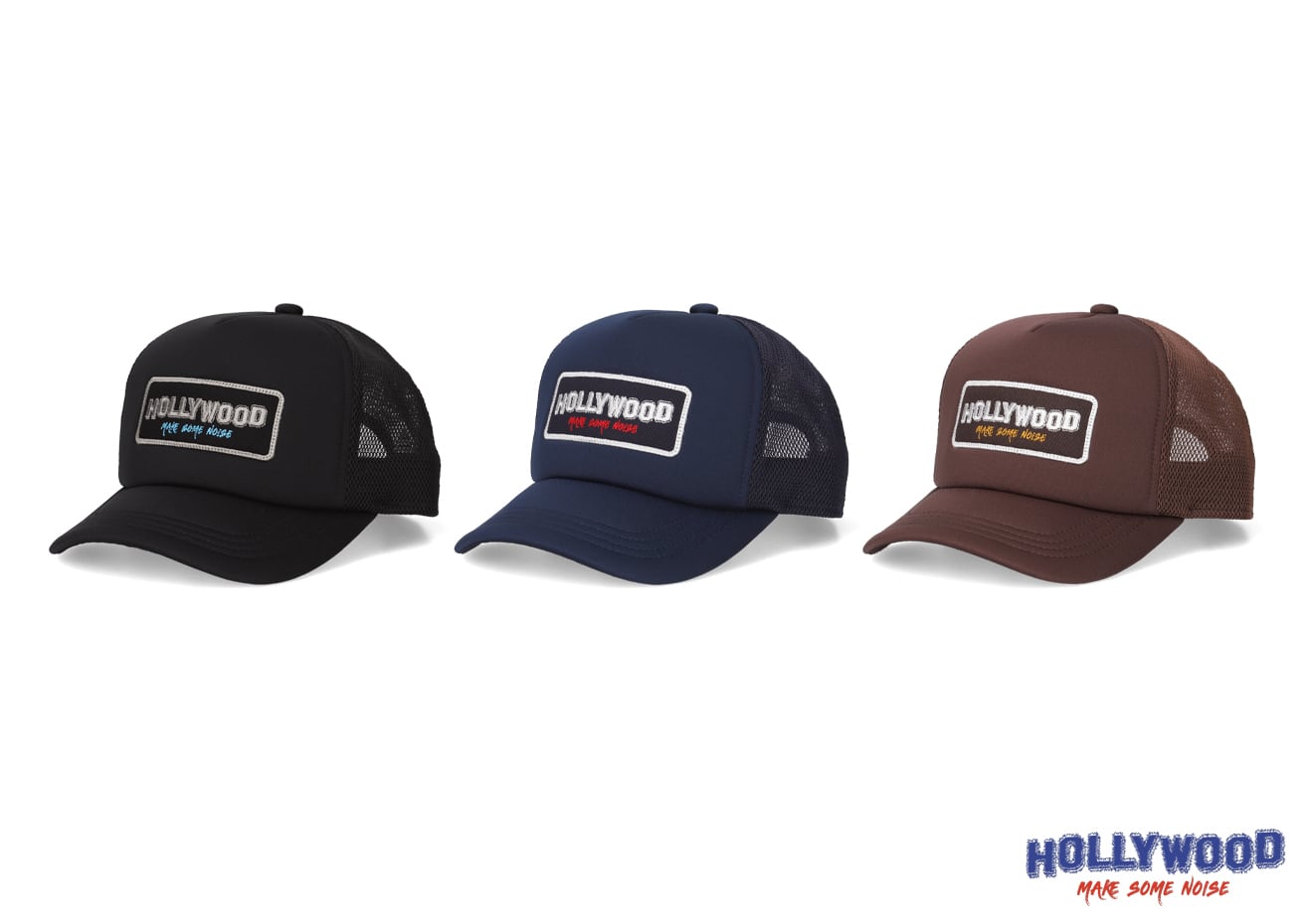 MAKE SOME NOISEのテーマからHOLLYWOODサインが揺れているイメージを連想したKOMY氏描き下ろしの今季のテーマロゴパッチメッシュキャップ。