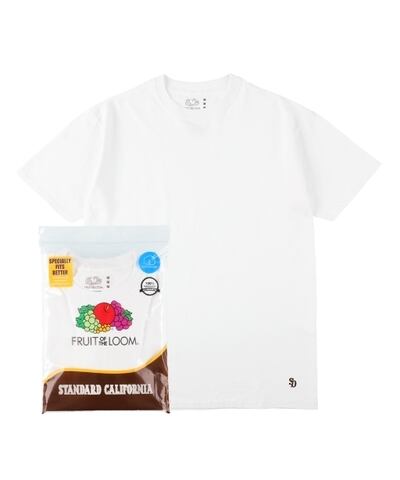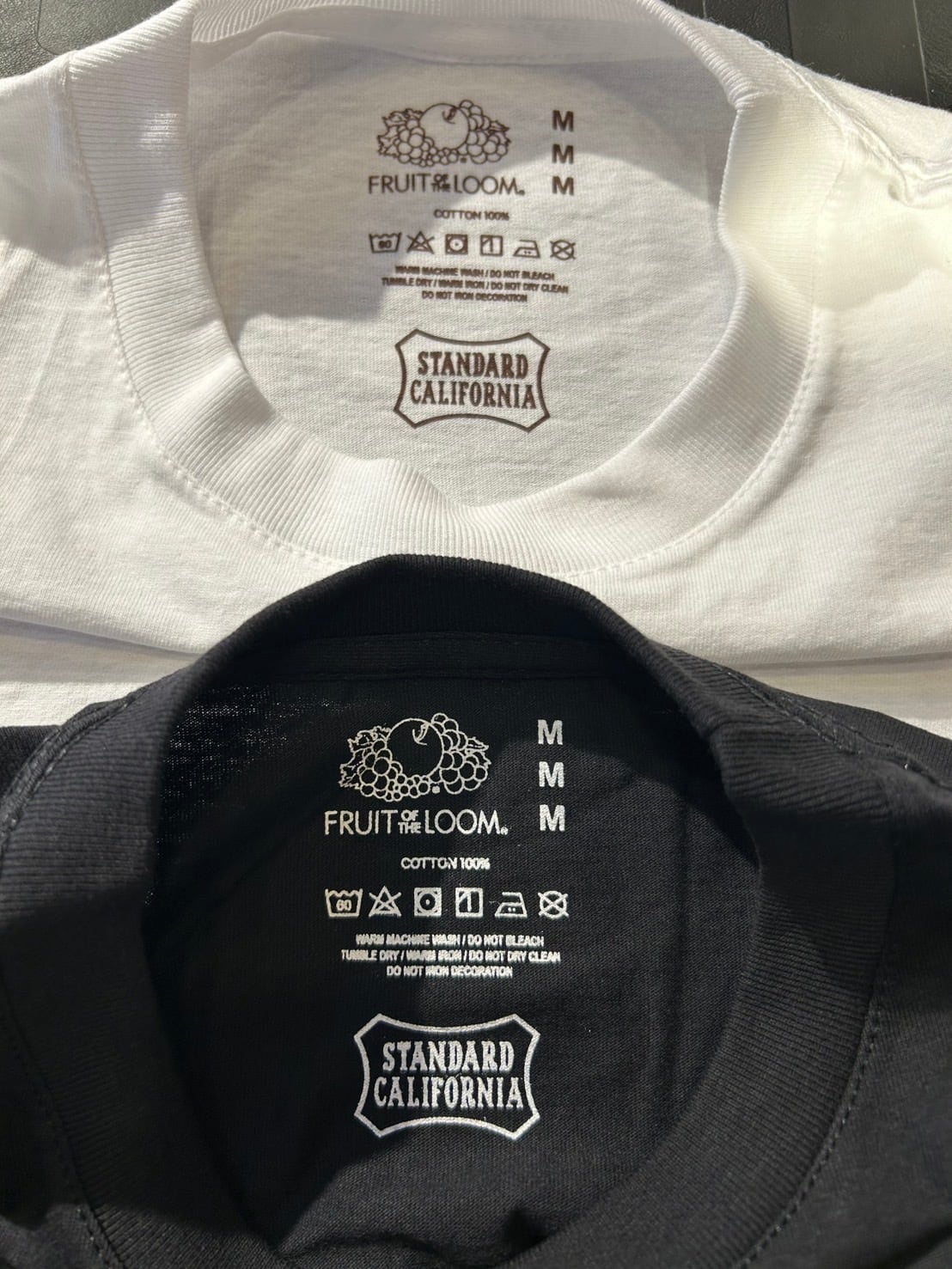 そんなフルーツオブザルームに自分たちが好きな生地感とサイズ感のボディをベースに別注した2パックT。