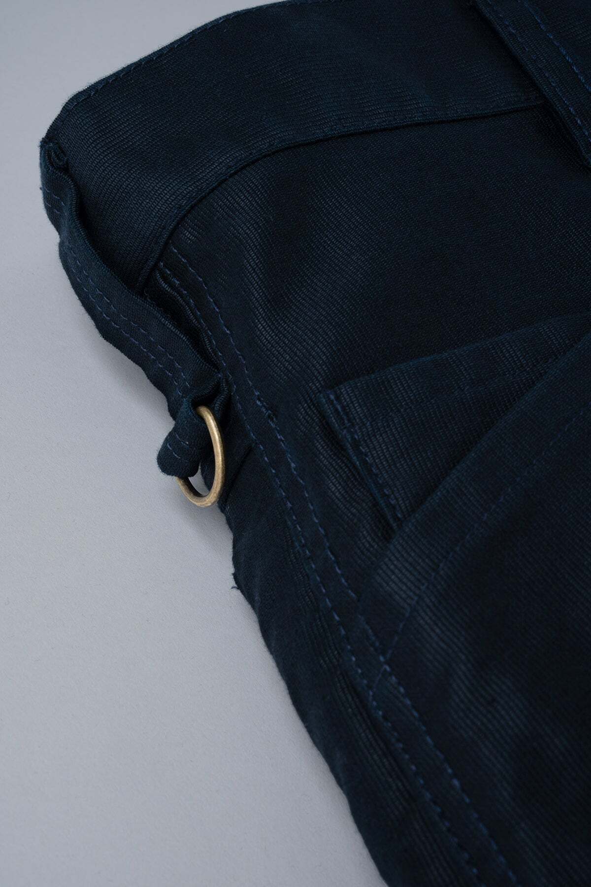 春から新たにラインナップに加わったセイラーワークパンツをベースにしており、元々はアメリカ海軍のデッキクルーが履いていたパンツから着想を得ています。作業性に優れたポケットの配置と、程よい太さのシルエットが特徴的です。
