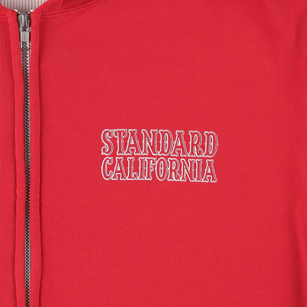 左胸にはStandard Californiaのベーシックロゴを、ブラックとレッドにはホワイト、ネイビーにはイエローでラバープリントしました。
