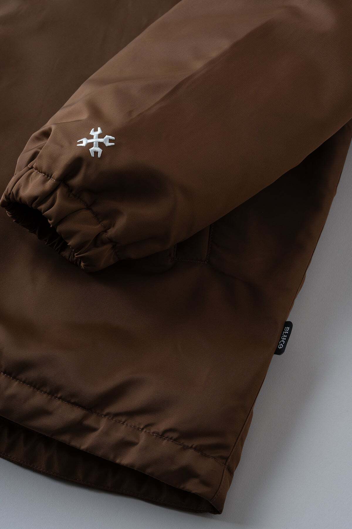 アップデートされたボアコーチジャケットが今季も登場。表地をヘビーナイロンツイルに変更し、防風性と防寒性をさらに強化しました。シンプルなディテールと動きやすさを兼ね備え、会社やモーターチームのユニフォーム用プリントベースとしても高い支持を集めているモデルです。